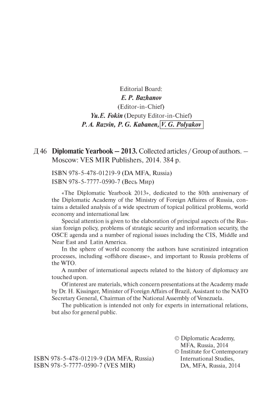 Издание предназначено не только для специалистов-международников, но и широкого круга читателей.