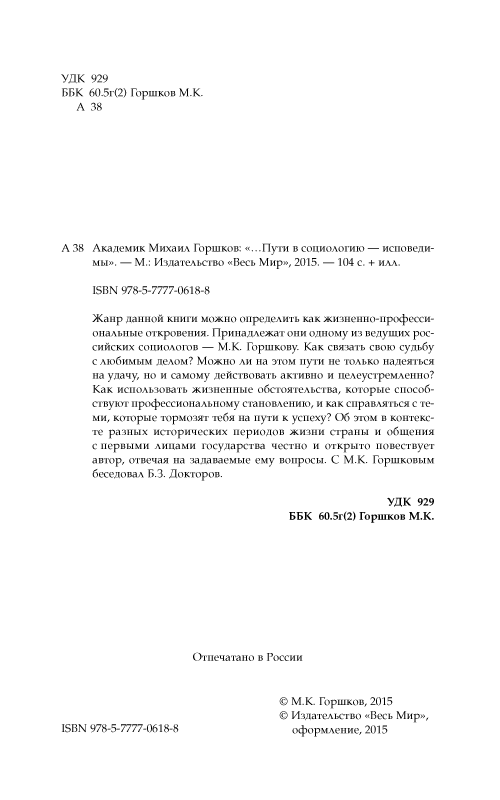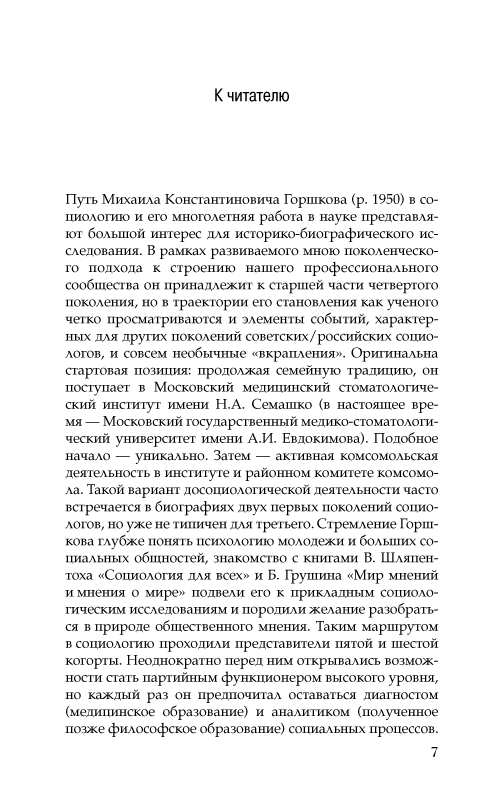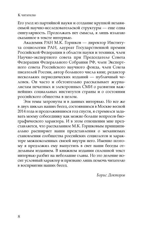 Книга-интервью, которое Борис Докторов взял у одного из самых известных российских социологов Михаила Константиновича Горшкова.