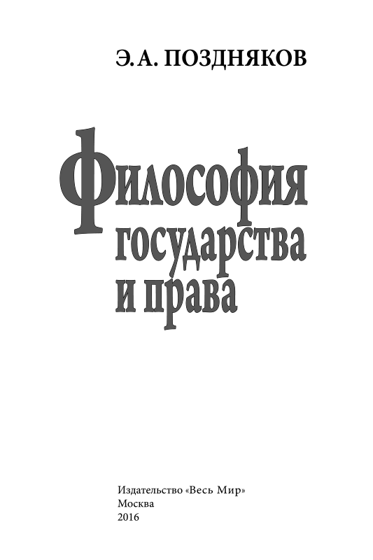 - К выходу в свет книги: Э.А. Поздняков «Философия государства и права».