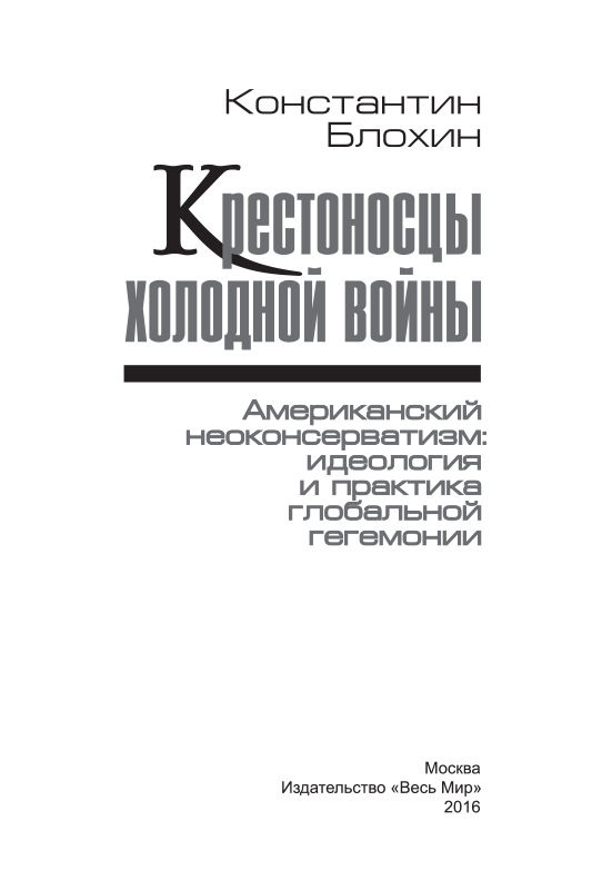 Крестоносцы холодной войны. Американский неоконсерватизм: идеология и практика глобальной гегемонии