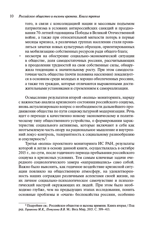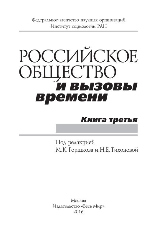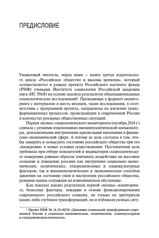 - Dear reader, you are holding the third book in the series Russian Society and the Challenges of Our Time, which is implemented in the framework of the Russian Science Foundation (RSF) by researchers from the Institute of Sociology of the Russian Academy of Sciences (IS RAS) based on the analysis of the...