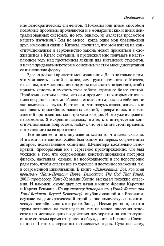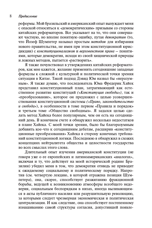 В основу книги легли лекции, прочитанные в 2013 г. в Фуданьском университете (КНР) американским профессором и уроженцем Бразилии Жозе Стелле. По своему характеру эти лекции относятся к сфере политической философии. Предметом размышлений автора является поиск оптимальной модели конституционного устройства для развивающихся стран и, прежде всего, для Китая. Вслед за Ф. Хайеком автор критически относится к демократической модели, существующей в США с присущими ей недостатками электоральной демократии. Стелле полагает, что и России, находящейся в процессе трансформации, не стоит следовать западной демократической модели. Конституционная реформа, предложенная Хайеком еще в конце 1970-х гг., с точки зрения Стелле, хотя и нуждается в совершенствовании, но остается действенным средством улучшения политической системы управления обществом.