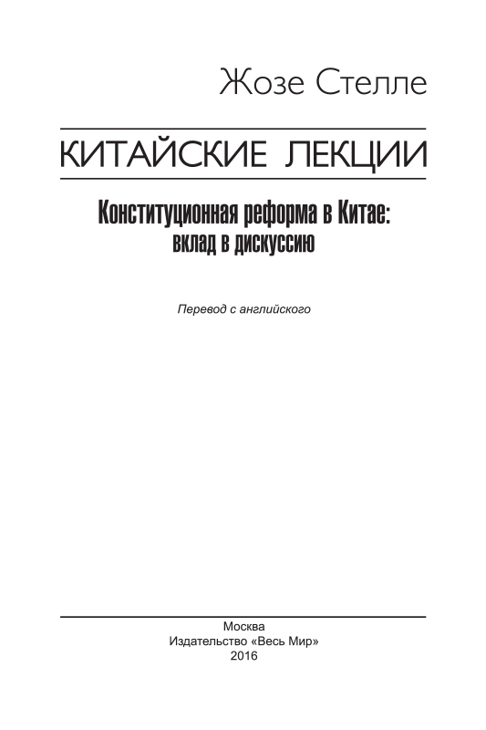 - Решение опубликовать данную книгу на русском языке навело меня на неминуемый вопрос: почему книга, изначально именуемая «Китайские лекции. Конституционная реформа в Китае: вклад в дискуссию» должна заинтересовать российского читателя? Главный ответ на него косвенно кроется во Вступлении...