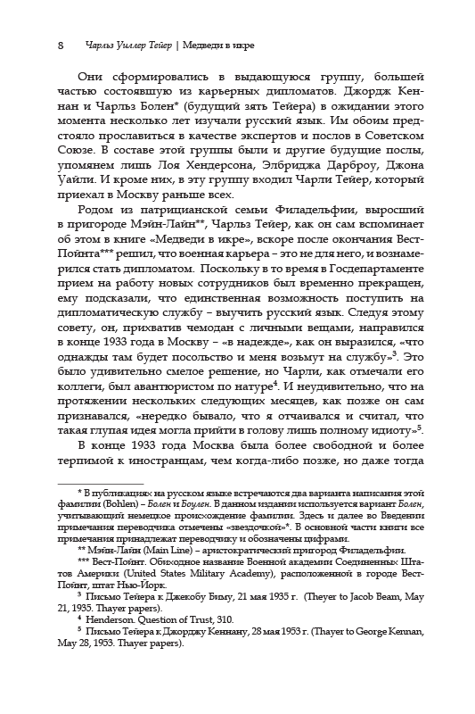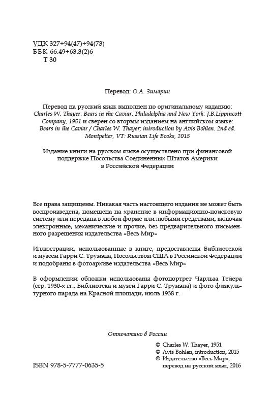 Русское издание книги сопровождается введением, написанным племянницей Ч. Тейера – Эвис Болен, много лет проработавшей на дипломатической службе. В издании немало прежде не публиковавшихся фотографий.