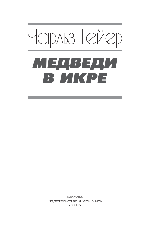 - Bears in the Caviar – «Медведи в икре» – так броско назвал свою книгу воспоминаний и впечатлений о Москве и Советской России 30-40х годов американский дипломат Чарльз Тейер.