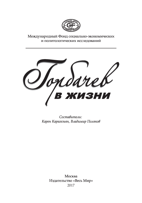 - Год назад была издана книга «Горбачев в жизни», подготовленная К.К. Карагезьяном и В.А. Поляковым. В новом издании книга дополнена и некоторыми текстовыми материалами и фотографиями.