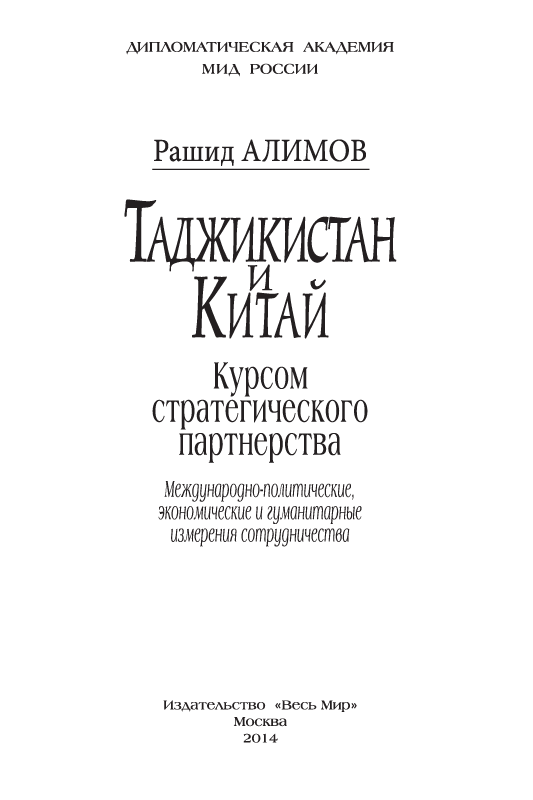Таджикистан и Китай: курсом стратегического партнерства. Международно-политические, экономические и гуманитарные измерения сотрудничества.