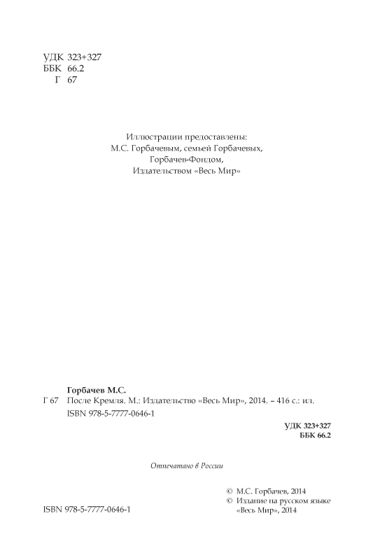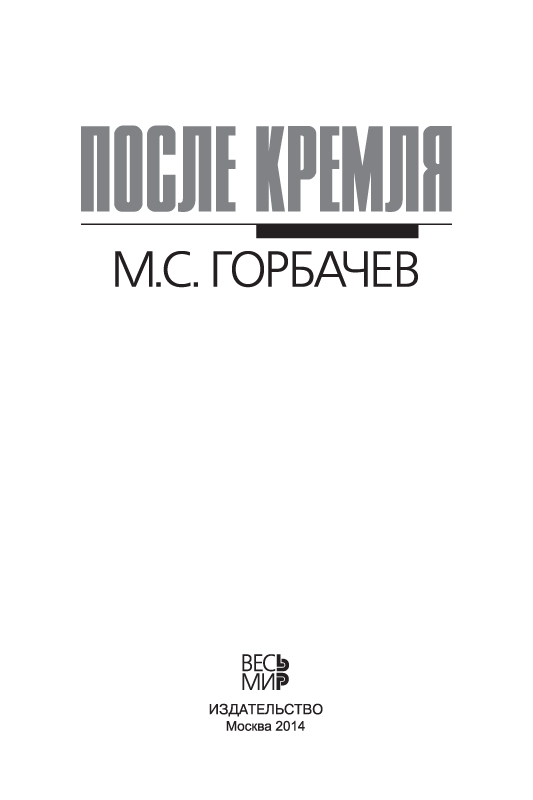 - Издательство «Весь Мир» от всей души поздравляет лауреата Нобелевской премии мира Михаила Сергеевича Горбачева с Днем рожденья.