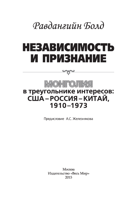 - Вышла в свет очень интересная книга монгольского дипломата и государственного деятеля Равдана Болда «Независимость и признание. Монголия в треугольнике интересов: США–Россия–Китай».