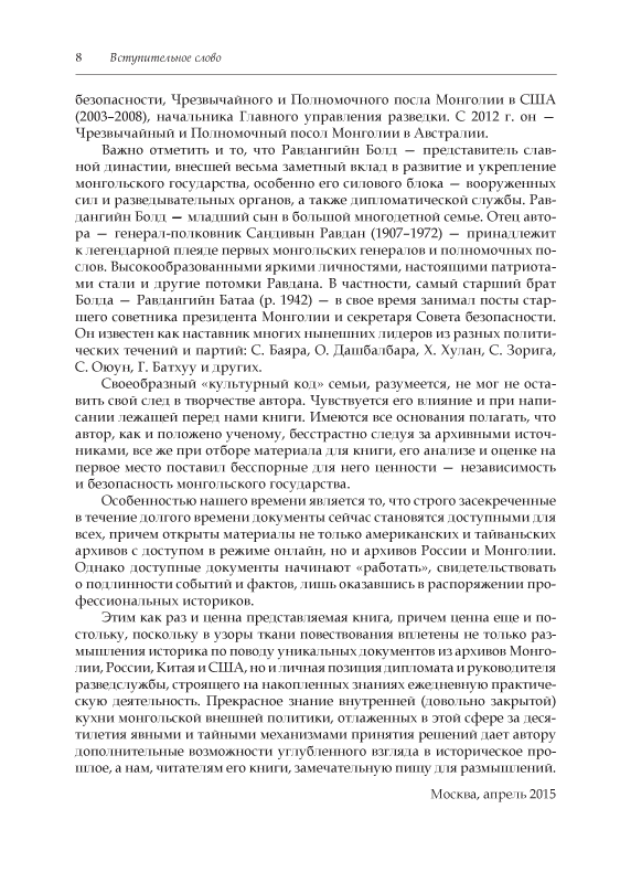 - Перед нами книга, появление которой на российском книжном рынке можно без преувеличения назвать долгожданным. В современных условиях издание монографии на русском языке в переводе с монгольского уже само по себе является событием. К великому сожалению, для того, чтобы...