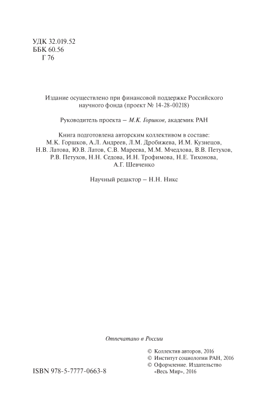 Для социологов, политологов, философов, экономистов, историков, психологов, правоведов, а также студентов и аспирантов соответствующих специальностей.