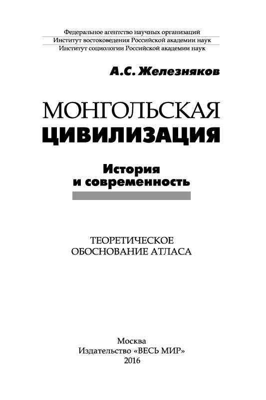 - К выходу в свет книги А.С. Железнякова «Монгольская цивилизация. История и современность. Теоретическое обоснование атласа».