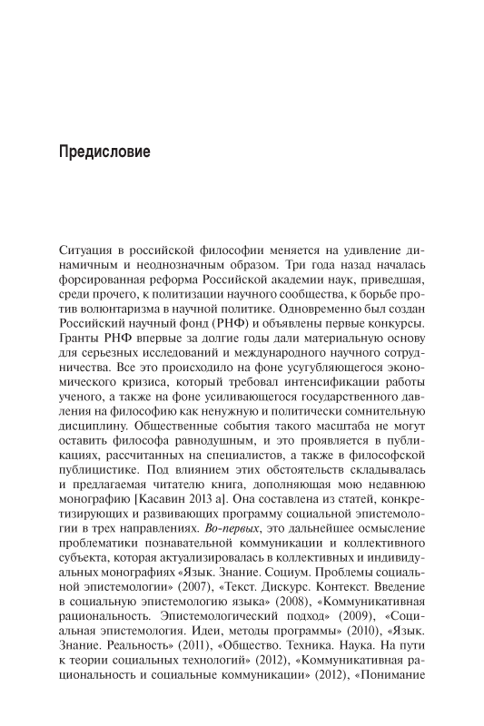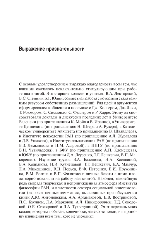 В книге конкретизируется и развивается программа социальной эпистемологии в трех направлениях. Во-первых, это дальнейшее осмысление проблематики познавательной коммуникации и коллективного субъекта, которая актуализировалась в предшествующих работах автора. Эта проблематика рассмотрена как значимый водораздел между так называемой критической социальной эпистемологией (С. Фуллер) и аналитической социальной эпистемологией (Э. Голдман). Преимущество предлагаемой концепции по сравнению с указанными в том, что она вводит в аргументативный арсенал социальной эпистемологии идеи М.М. Бахтина, Л.С. Выготского и М.К. Петрова, существенно продвигающие понимание коммуникативной природы познания.