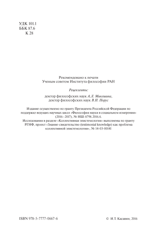 - К выходу в свет книги: И.Т. Касавин. Социальная философия науки и коллективная эпистемология.