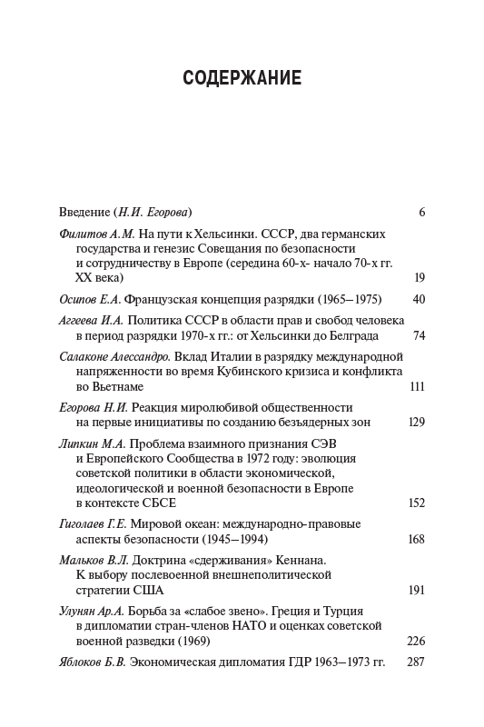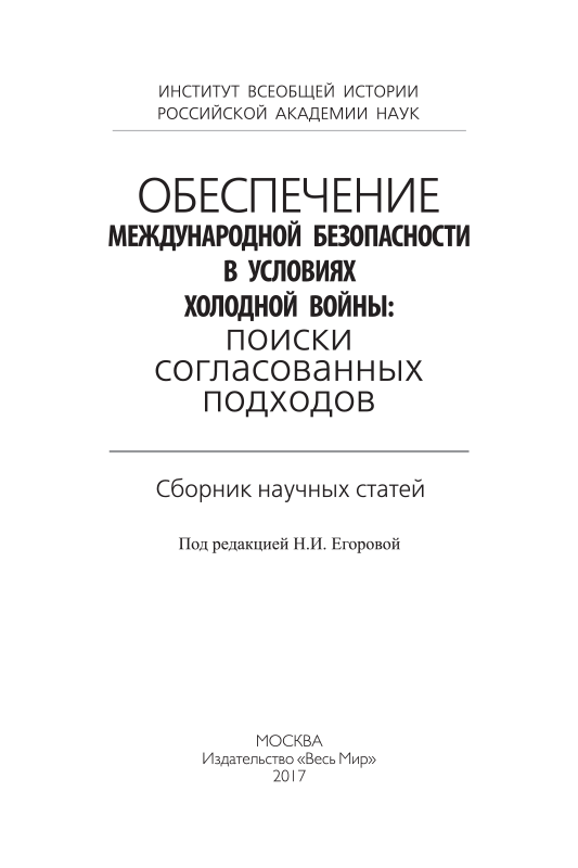 Обеспечение международной безопасности в условиях холодной войны: поиски согласованных подходов (под ред. Н.И. Егоровой).