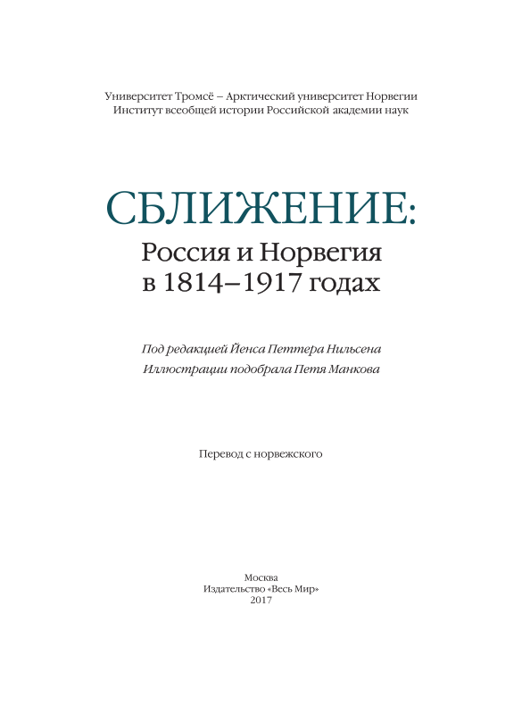 Книга «Сближение: Россия и Норвегия в 1814–1917 годах» была написана норвежскими и российскими историками в рамках совместного научного проекта под названием «Асимметричное соседство: Норвегия и Россия в период с 1814-го по 1917-й». Книга посвящена развитию межгосударственных отношений между двумя странами, рассматриваемых в широком международном контексте. Авторы много внимания уделяют личным и общественным взаимоотношениям россиян и норвежцев, тем многообразным и крепким связям между людьми, которые складывались в суровых условиях Севера, возле общей норвежско-российской границы. Образ соседа стал одной из сквозных тем в книге, авторы стремились продемонстрировать взаимовлияние представлений и действительности. Эта книга стала результатом глубокого изучения авторами огромного массива источников, хранящихся в норвежских и российских архивах.