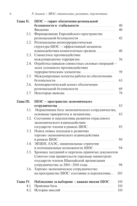 Книгу Генерального секретаря ШОС, доктора политологии Р. Алимова можно без преувеличения назвать «энциклопедией Шанхайской организации сотрудничества», поскольку в ней подробно освещены 15-летняя история и современный этап развития одной из наиболее влиятельных региональных международных организаций. Автор обосновывает тезис о ШОС как международной организации нового типа, региональной организации универсального характера, в основание которой заложены фундаментальные принципы равноправия всех ее членов. Впервые в издании приводится хроника всех основных событий в деятельности ШОС, а в Приложениях – основные документы – Хартия ШОС, важнейшие договоры и декларации. Важную часть книги составляет раздел «ШОС в вопросах и ответах», дающий исчерпывающее представления о всех основных сторонах и практике деятельности организации. Книга содержит впечатляющий иллюстративный ряд.