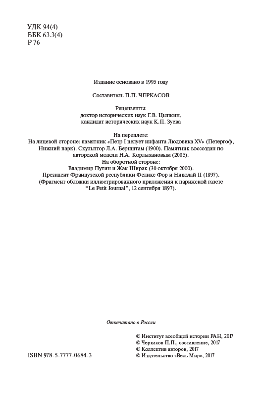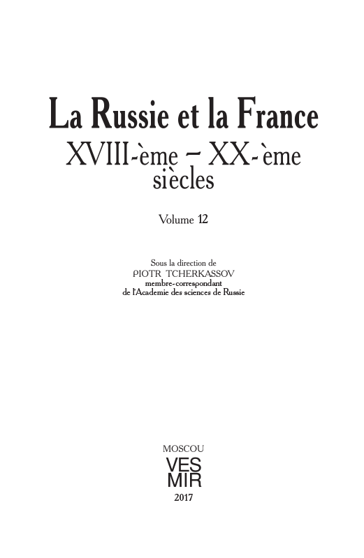 - Выход очередного сборника «Россия и Франция. XVIII–XX века» совпадает с памятным рубежом в истории российско-французских отношений. Триста лет назад, в 1717 году, Петр I с официальным визитом побывал во Франции. Одним из результатов этой, поистине исторической,...
