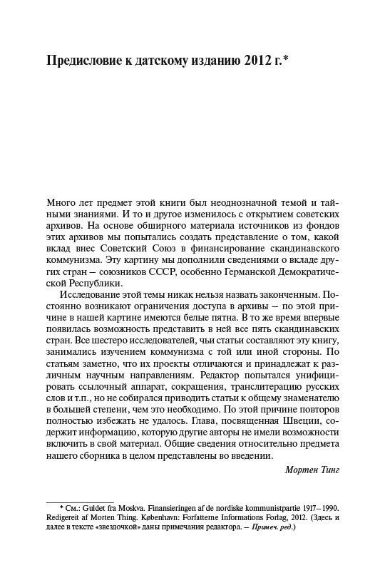 Авторами этого уникального международного коллективного труда являются ведущие историки из Дании (М. Тинг), Исландии (Й. Олафссон), Норвегии (С.Г. Хольтсмарк), Финляндии (К. Рентола, Т. Саарела) и Швеции (Л. Бьёрлин). Они детально изучили проблемы финансирования деятельности коммунистических партий стран Северной Европы со стороны Коминтерна, РСДРП(б) (позднее – РКП(б), ВКП(б), КПСС), а также некоторых правящих партий социалистических государств Восточной Европы, опираясь прежде всего на ценные, подчас уникальные документы, хранящиеся в крупнейших архивах России, стран Скандинавии, Великобритании, Германии, Польши. Эти многолетние изыскания вызывают интерес, поскольку в них прослеживаются особенности и эволюция финансовой и иной материальной поддержки компартий и близких к ним организаций в каждой из стран упомянутого региона. Кроме того, в книге имеется приложение, в котором публикуются некоторые документы из российских архивов.