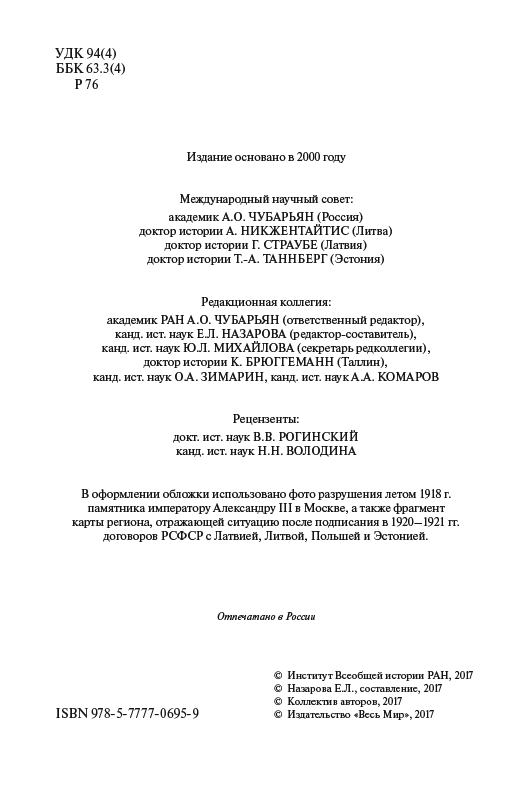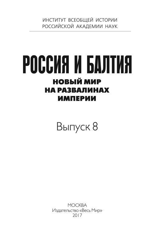 - Предлагаемый читателю сборник — восьмой в серии «Россия и Балтия» — посвящен времени крушения Российской империи и становления национальных государств на ее западных окраинах. Период, рассматриваемый в статьях настоящего тома, относится в основном к промежутку...