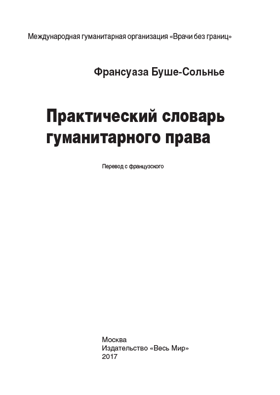 - Международная неправительственная организация «Врачи без границ» и издательство «Весь Мир» представляют уникальное и исключительно важное издание: Практический словарь гуманитарного права, созданный Франсуазой Буше-Сольнье.