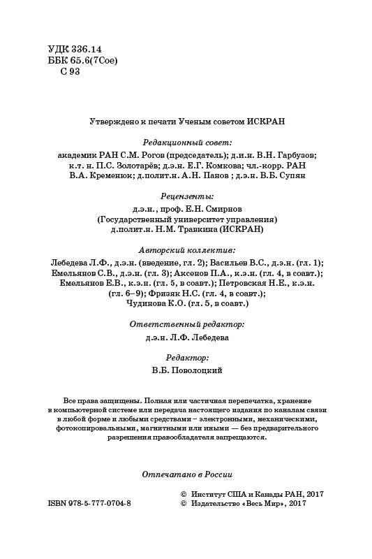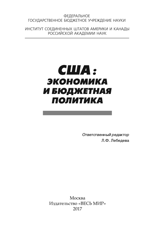 - Исследование Института США и Канады «США: экономика и бюджетная политика» под редакцией Л.Ф. Лебедевой.