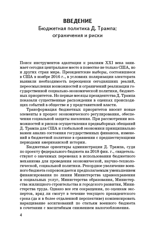 Трансформация бюджетных приоритетов вносит качественно новые элементы в процесс регулирования социально-экономических процессов, обеспечения государственной поддержки населения. Авторами проанализированы ключевые направления бюджетной политики в начале президентства Д. Трампа в сравнении с предшествующими периодами; дана оценка ограничениям и рискам осуществления предвыборных обещаний, возможным последствиям их реализации для экономики, социальной защиты населения, состояния государственных финансов и позиций США в мире.