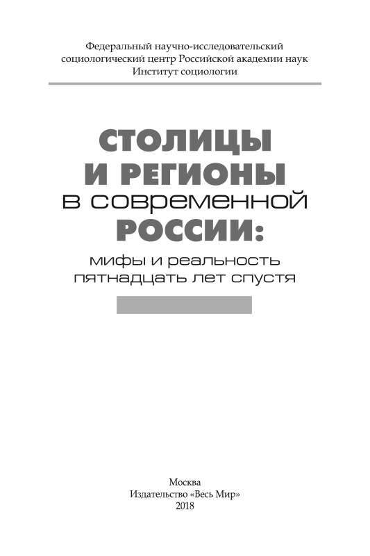 • В серии «Российское общество в зеркале социологии» вышла новая книга «Столицы и регионы в современной России: мифы и реальность».