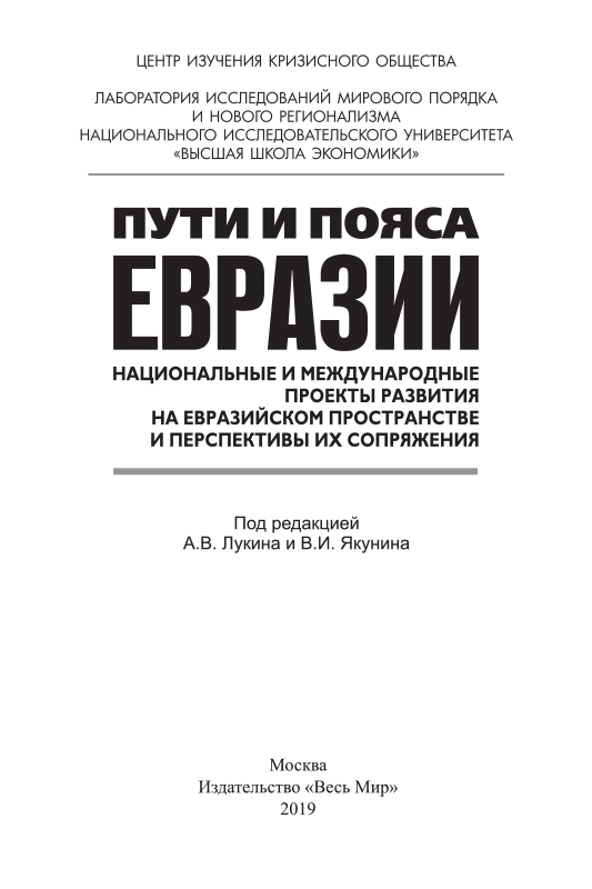 Пути и пояса Евразии. Национальные и международные проекты развития на Евразийском пространстве и перспективы их сопряжения