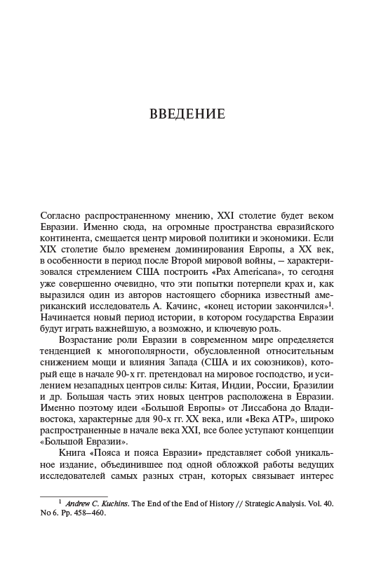 В книге представлены мнения ведущих мировых экспертов относительно современного состояния и перспектив развития Евразийского континента, политических и экономических процессов, происходящих на нем. На этой основе делается попытка сформулировать некоторые выводы о том, насколько обоснованы представления о грядущей ведущий роли Евразии в мире, каким образом можно углубить сотрудничество между государствами континента и ускорить их экономическое развитие.