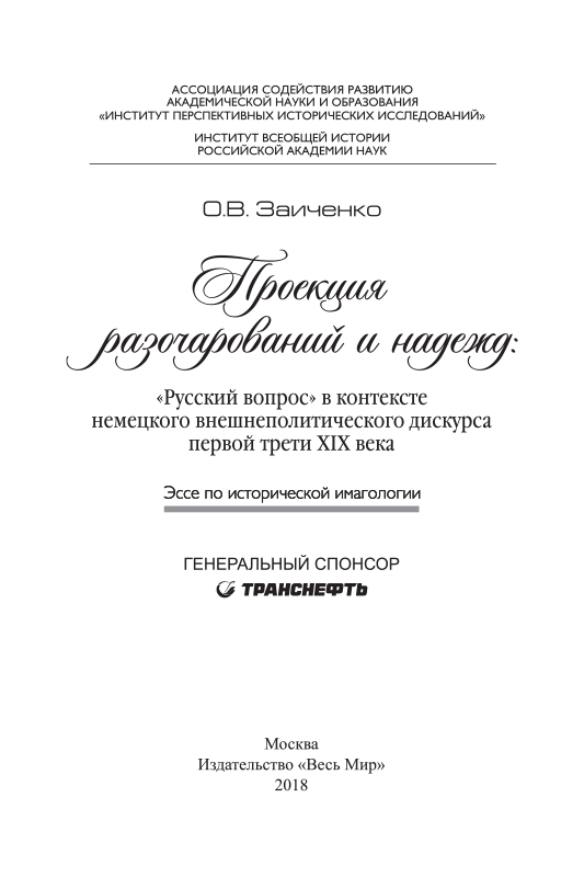 - Вторая книга О. В. Заиченко, посвященная немецкой публицистике начала 19 века, вышла в свет: «Проекция и разочарований и надежд: „Русский вопрос“ в контексте немецкого внешнеполитического дискурса первой трети XIX века».