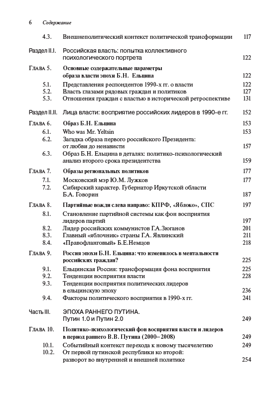 В книге обобщаются результаты масштабного исследования, посвященного восприятию российскими гражданами образов власти и политиков с 1993 г. до настоящего времени. Характеризуются особенности политической перцепции в каждый из рассматриваемых периодов постсоветской истории: эпоху Б.Н. Ельцина (1993-2000 гг.), первые двух путинские президентства (2000–2008) президентство Д.А. Медведева (2008–2012 гг.) и третье президентство В.В. Путина (2012–2018 гг.). Анализируется восприятие гражданами первых лиц государства (Б.Н. Ельцин, Д.А. Медведев, В.В. Путин), региональных политиков, партийных вождей, лидеров-оппозиционеров, вплоть до представителей новейшей генерации (А.А. Навальный, К.А. Собчак, Н.В. Поклонская, М.А. Сурайкин). Отображены событийный контекст и политический фон рассматриваемого исторического периода.