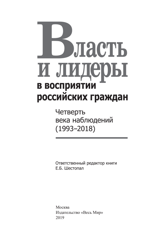 Власть и лидеры в восприятии российских граждан. Четверть века наблюдений (1993–2018)