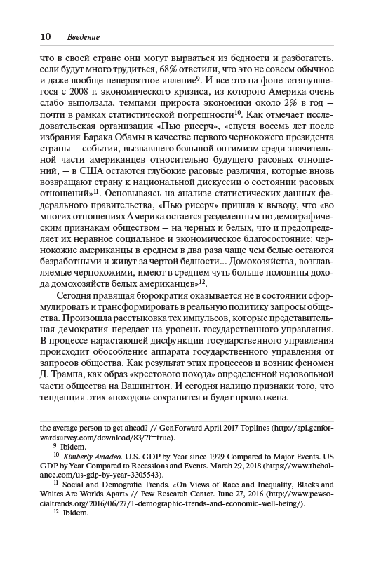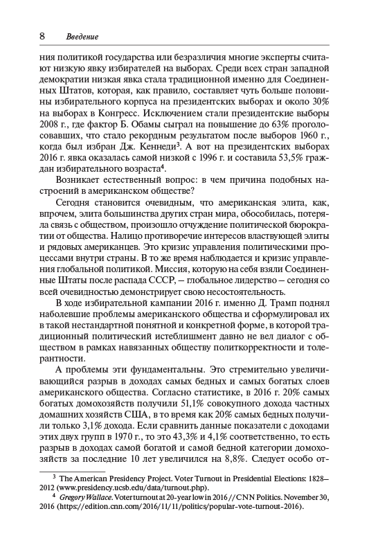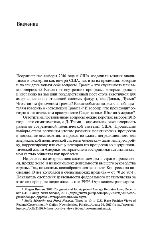 Дестабилизация политической системы, дезорганизация управления, потеря внутренних и внешних ориентиров, противостояние президента и Конгресса – это характеристики нынешних реалий американской внутриполитической жизни, свидетельствующие о нарастании кризисных тенденций в политической системе США. Приход к власти нового президента в лице нестандартного политика Д. Трампа, провозгласившего задачей своего правления смену устоявшейся парадигмы развития американского общества, стал точкой отсчета нового периода в жизни Америки, характеризующегося возрастающей политической активностью и неуправляемостью.