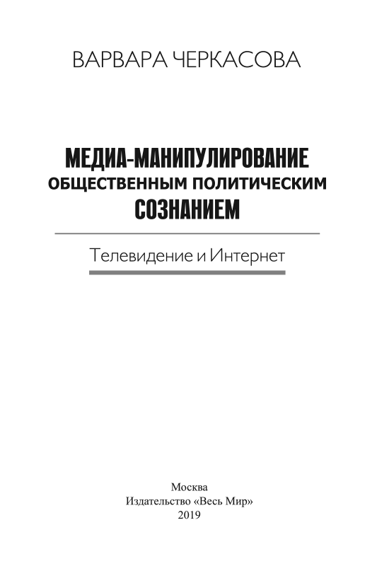 - Книга молодого автора Варвары Черкасовой представляет собой отличный аналитический очерк на тему воздействия ТВ и Интернета на общественное политическое сознание.