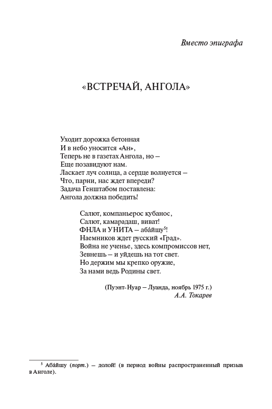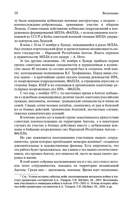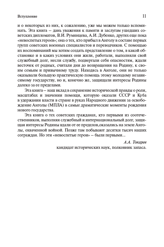 Эта книга – вклад в сохранение исторической правды о роли, масштабах, значении помощи СССР и Кубы Анголе. О советских гражданах, первыми из соотечественников оказавшихся в Анголе, охваченной войной. Позже там побывают десятки тысяч наших сограждан.