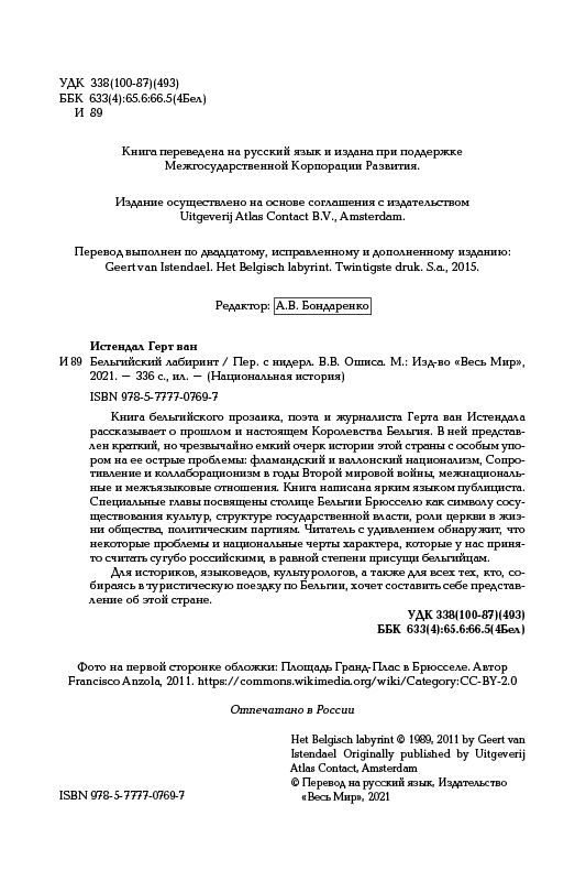 Книга бельгийского прозаика, поэта и журналиста Герта ван Истендала рассказывает о прошлом и настоящем Королевства Бельгия. В ней представлен краткий, но чрезвычайно емкий очерк истории этой страны с особым упором на ее острые проблемы: фламандский и валлонский национализм, Сопротивление и коллаборационизм в годы Второй мировой войны, межнациональные и межъязыковые отношения. Книга написана ярким языком публициста. Специальные главы посвящены столице Бельгии Брюсселю как символу сосуществования культур, структуре государственной власти, роли церкви в жизни общества, политическим партиям. Читатель с удивлением обнаружит, что некоторые проблемы и национальные черты характера, которые у нас принято считать сугубо российскими, в равной степени присущи бельгийцам.