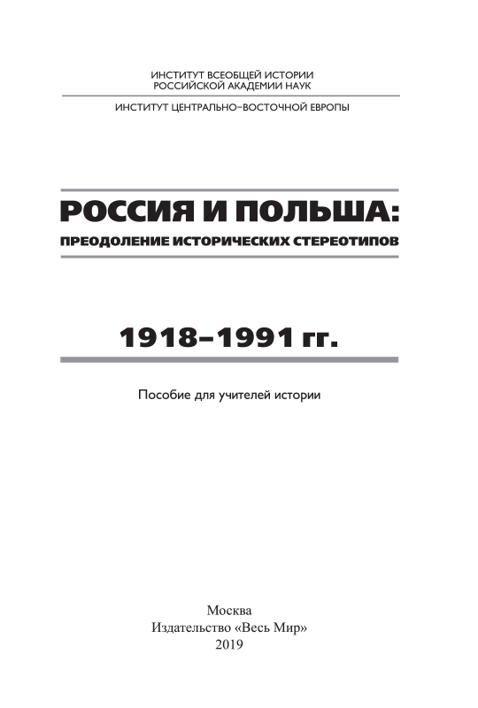 Россия и Польша: преодоление исторических стереотипов. 1918–1991 гг. Пособие для учителей истории.