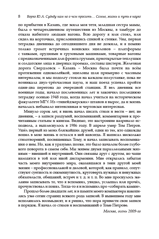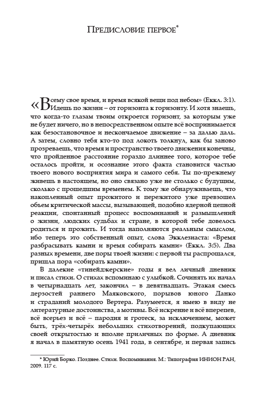 - Первое предисловие я написал в мое 80-летие. Свое намерение я выполнил — в том же году типография ИНИОН РАН напечатала сто экземпляров книги «Юрий Борко. Позднее. Стихи, воспоминания». Я роздал их в основном однокурсникам, а также друзьям, большей частью...