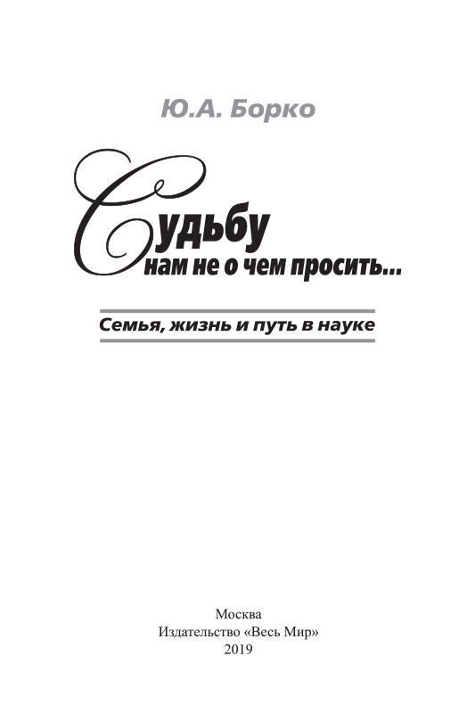 Судьбу нам не о чем просить… Семья, жизнь и путь в науке.