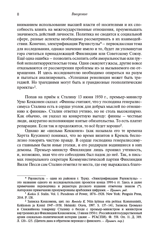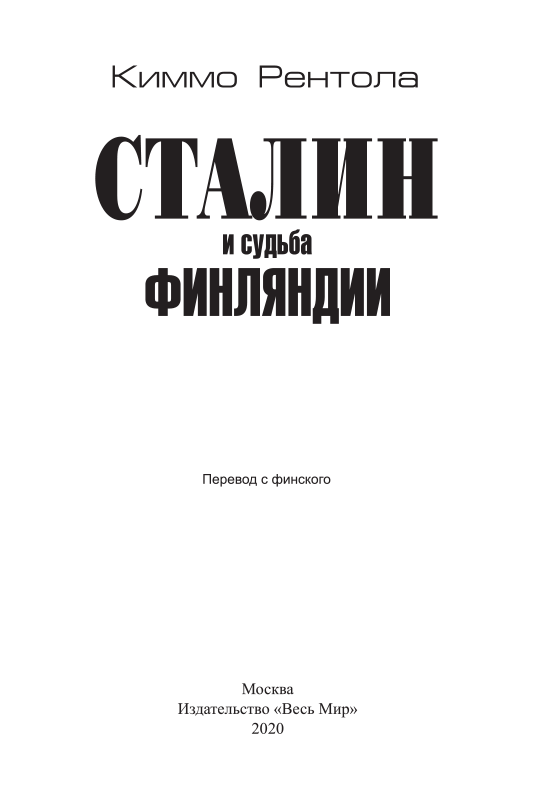 Известный финский историк, профессор Киммо Рентола провел глубокое исследование той роли, которую сыграл И.В. Сталин в принятии решений правительства Советского Союза в отношении Финляндии. В центре внимания автора – четыре важнейших эпизода в советско-финских отношениях в XX веке: Зимняя война (1939–1940), завершение участия Финляндии во Второй мировой войне (1944), решение вопроса о характере политического строя страны (1948) и события 1950–1951 гг., когда маятник отношения к Финляндии в Москве набрал широкую амплитуду – от восприятии Финляндии как союзника до отношения как к врагу в контексте обострения общей обстановки в мире.