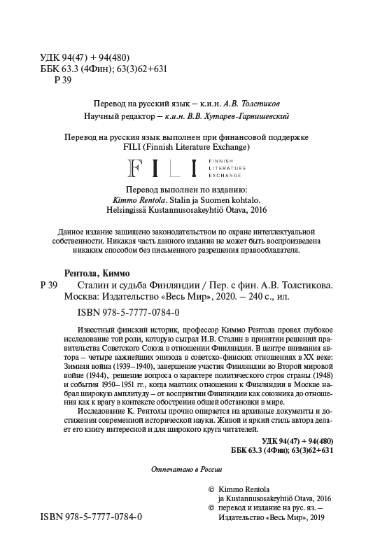 - Вышла книга финского историка Киммо Рентола: Сталин и судьба Финляндии.