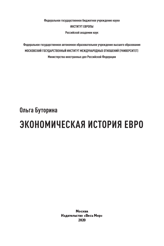 - Вышла в свет книга Ольги Витальевны Буториной «Экономическая история евро».