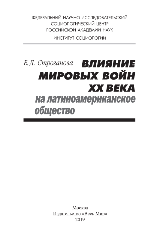 - Елена Дмитриевна Строганова — известный исследователь социально-политических процессов в странах Латинской Америки. Ее новая книга «Влияние мировых войн XX века на латиноамериканское общество» представляет несомненный интерес не только для ученых и экспертов, но и для широкой круга читателей.