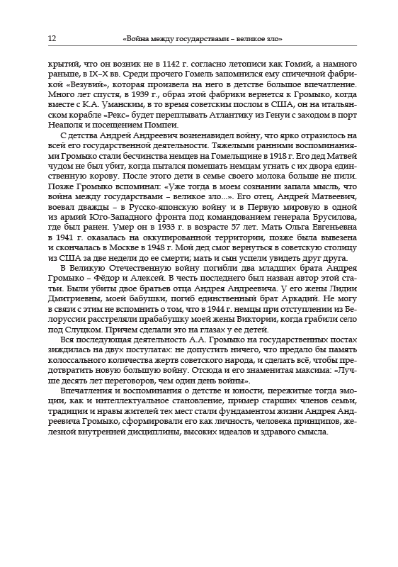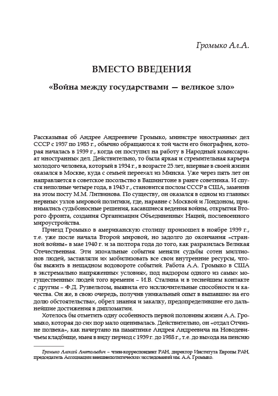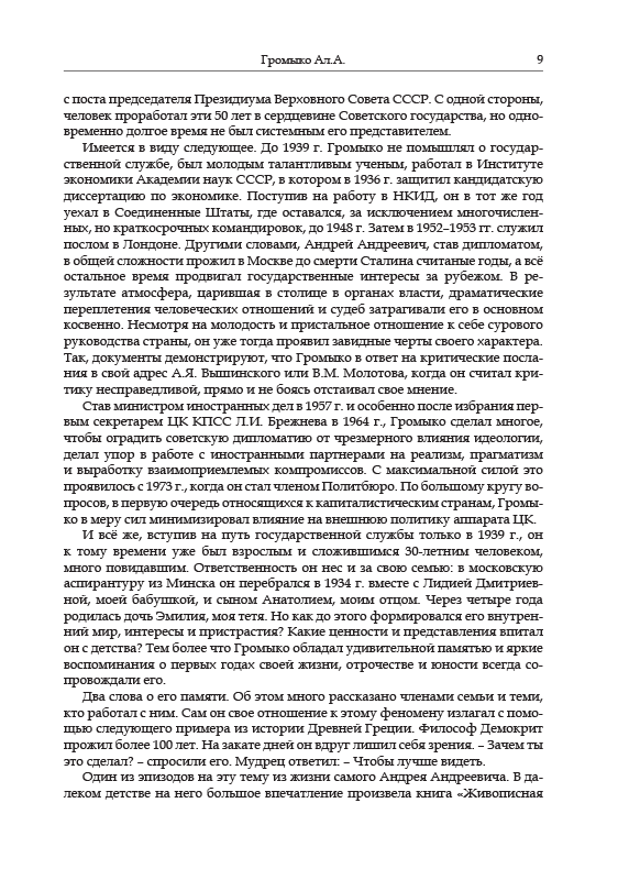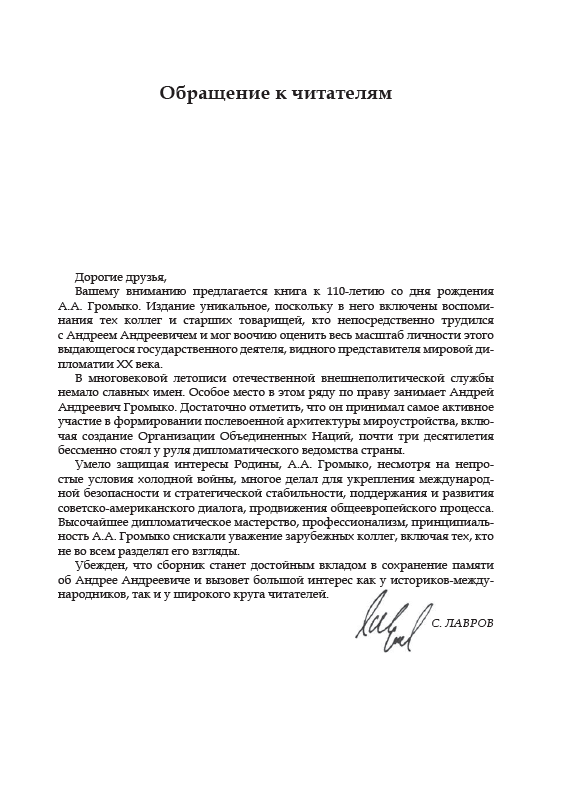 - Дорогие друзья, Вашему вниманию предлагается книга к 110-летию со дня рождения А. А. Громыко. Издание уникальное, поскольку в него включены воспоминания тех коллег и старших товарищей, кто непосредственно трудился с Андреем Андреевичем и мог воочию оценить весь масштаб...