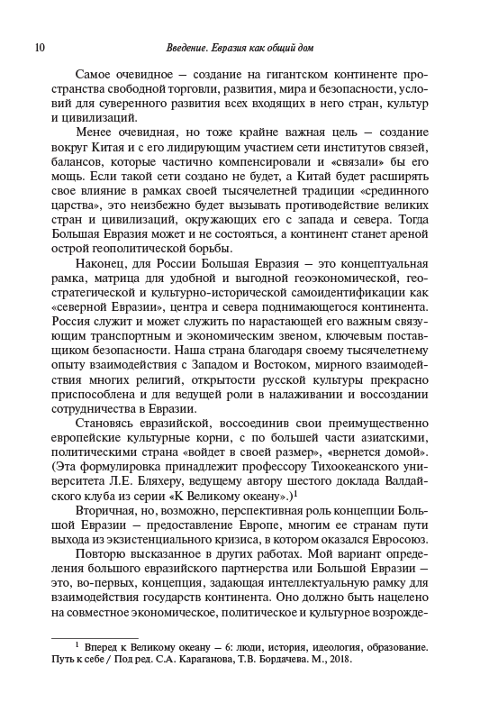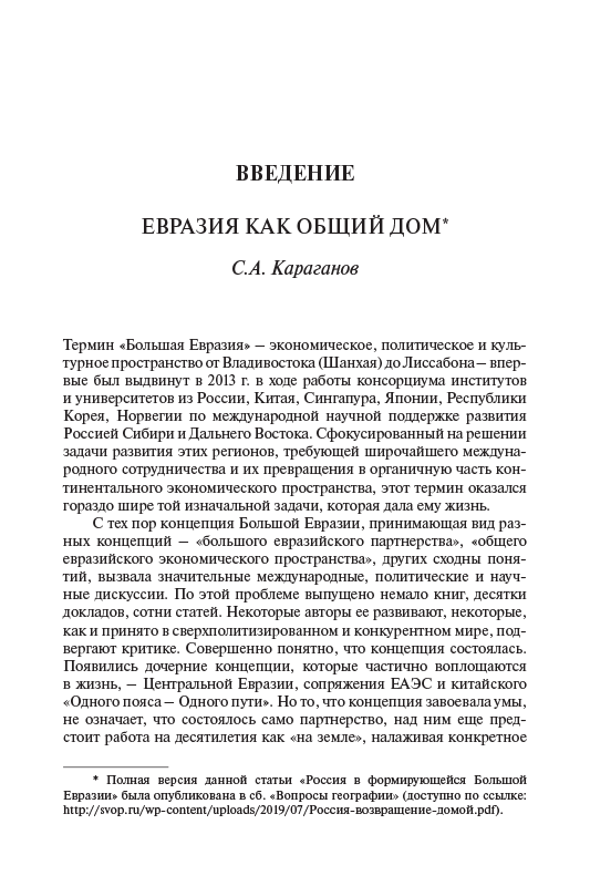 - Термин «Большая Евразия» — экономическое, политическое и культурное пространство от Владивостока (Шанхая) до Лиссабона — впервые был выдвинут в 2013 г. в ходе работы консорциума институтов и университетов из России, Китая, Сингапура, Японии, Республики...