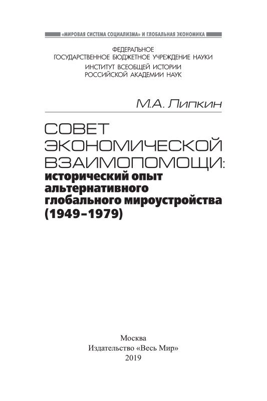 - The monograph by Mikhail Lipkin is dedicated to the one of the key organizations of Eastern bloc during the era of the Cold War – the Council for Mutual Economic Assistance (CMEA or COMECON) that existed in 1949–1991. Even though the author deals with only the first thirty years of its functioning, he...