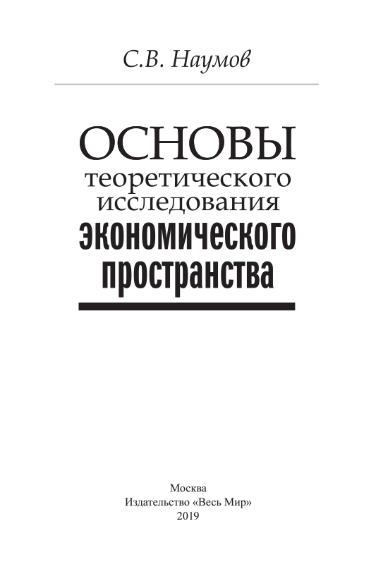 - Книга «Основы теоретического исследования экономического пространства» — вторая книга С. В. Наумова и снова она посвящена актуальной теме. Пожалуй, к ней вполне применима максима: «Нет ничего практичнее хорошей теории».