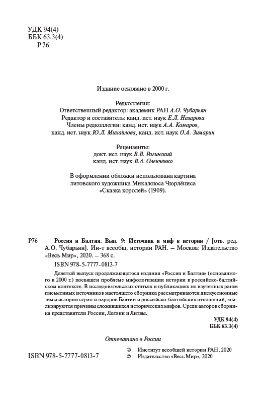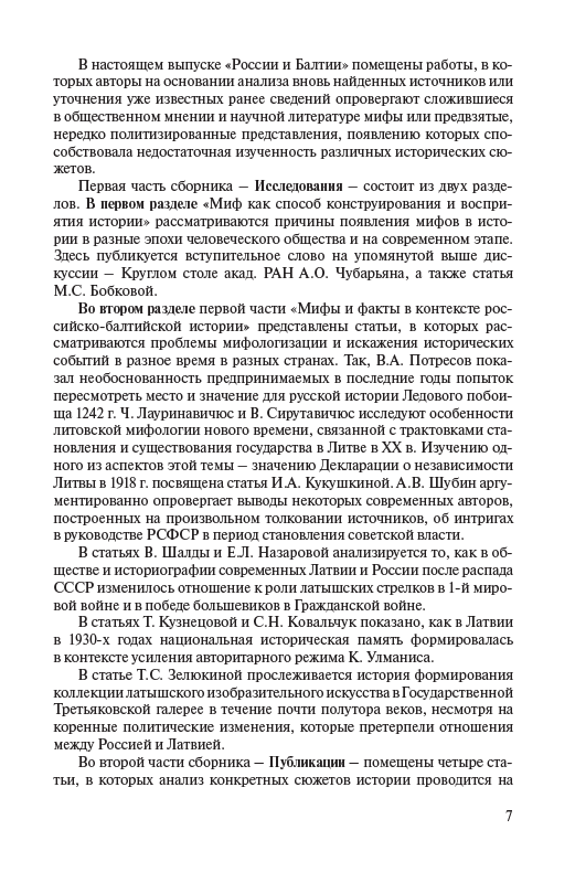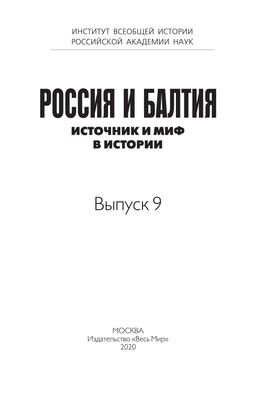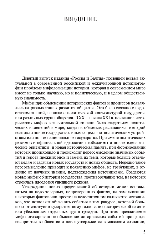 - Девятый выпуск издания «Россия и Балтия» посвящен весьма актуальной в современной российской и международной историографии проблеме мифологизации истории, которая в современном мире имеет не только научную, но и политическую, и в целом общественную значимость....