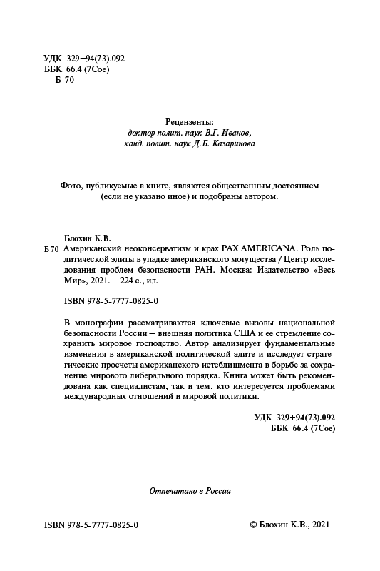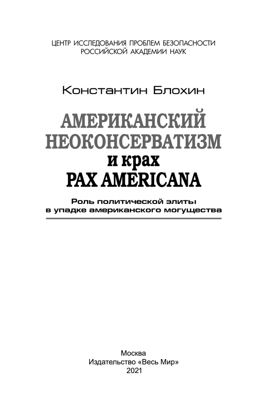 - Новое монографическое исследование видного американиста Константина Владимировича Блохина является логическим продолжением и дополнением его работы «Крестоносцы холодной войны. Американский неоконсерватизм: идеология и практика глобальной гегемонии», вышедшей в свет в 2016 году. Его...